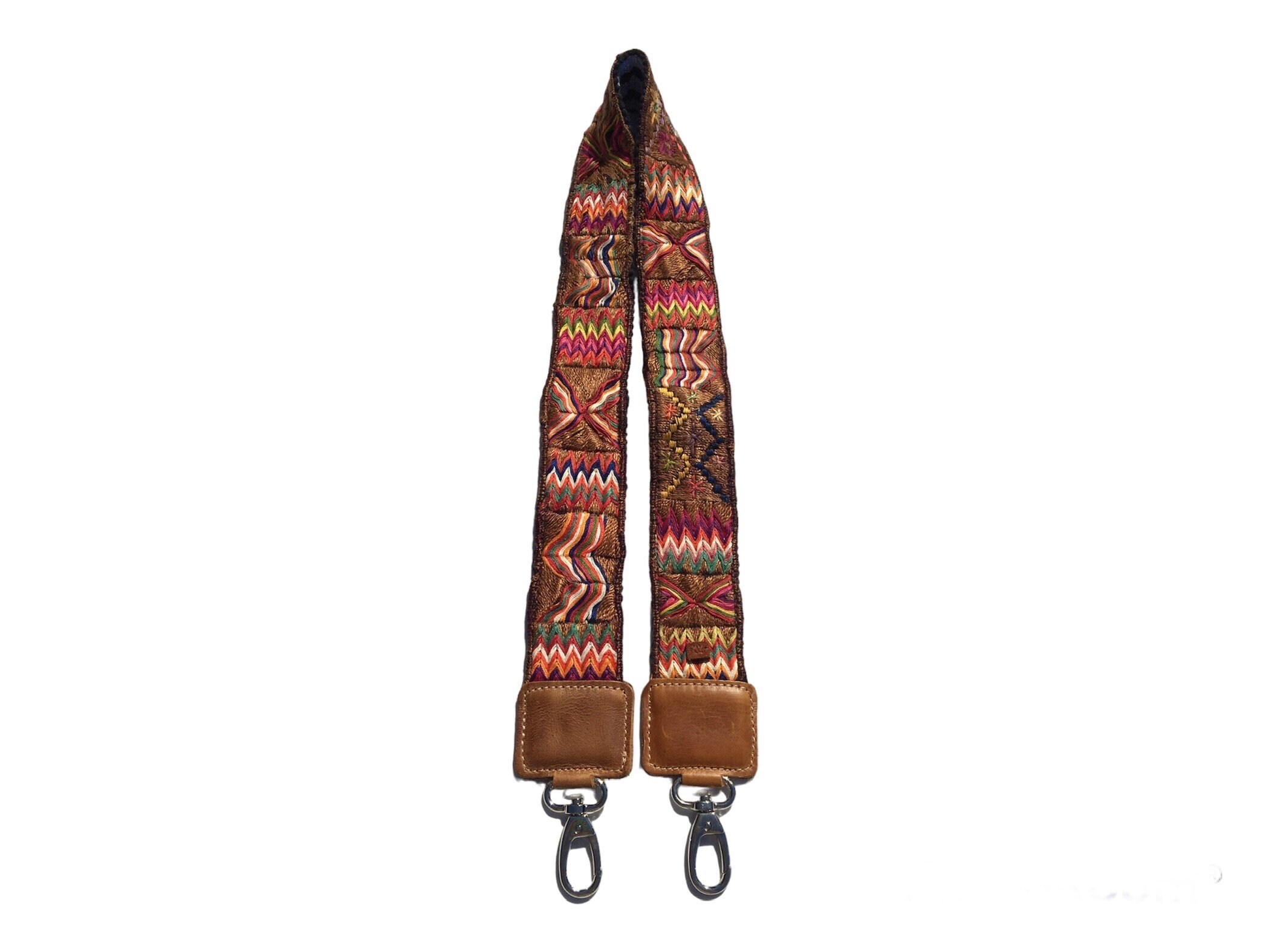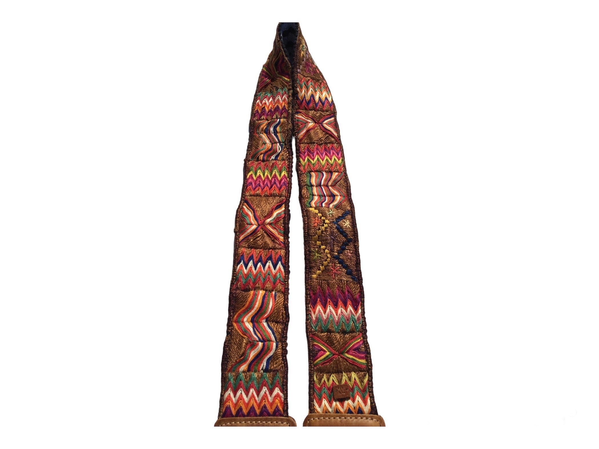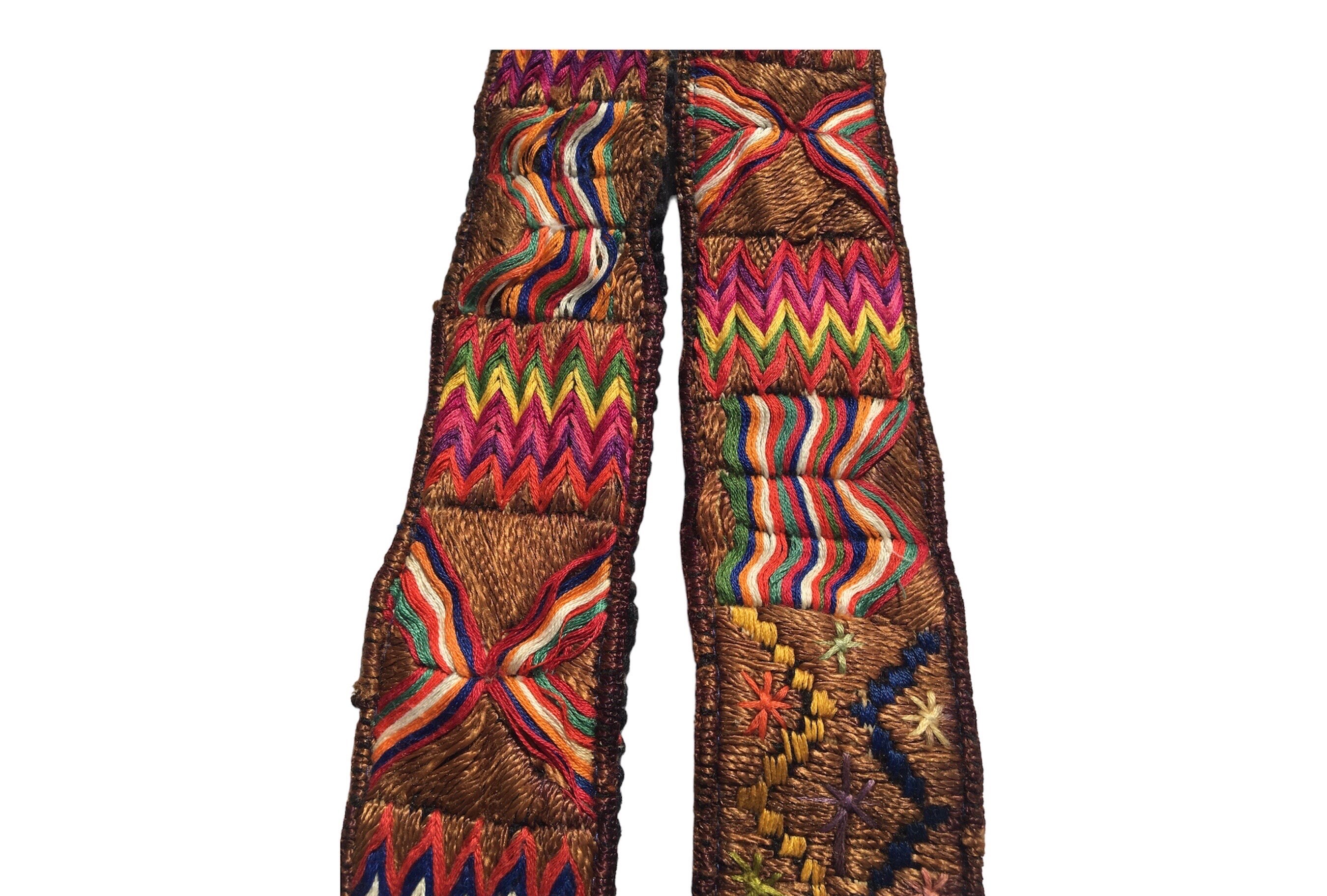 Embroidered bag strap or camera strap with geometric designs and flowers. Perfect addition to your bag, purse or huipil convertible day bag. Hand embroidered by artisans and repurposed from a vintage Guatemalan textile Faja belt.